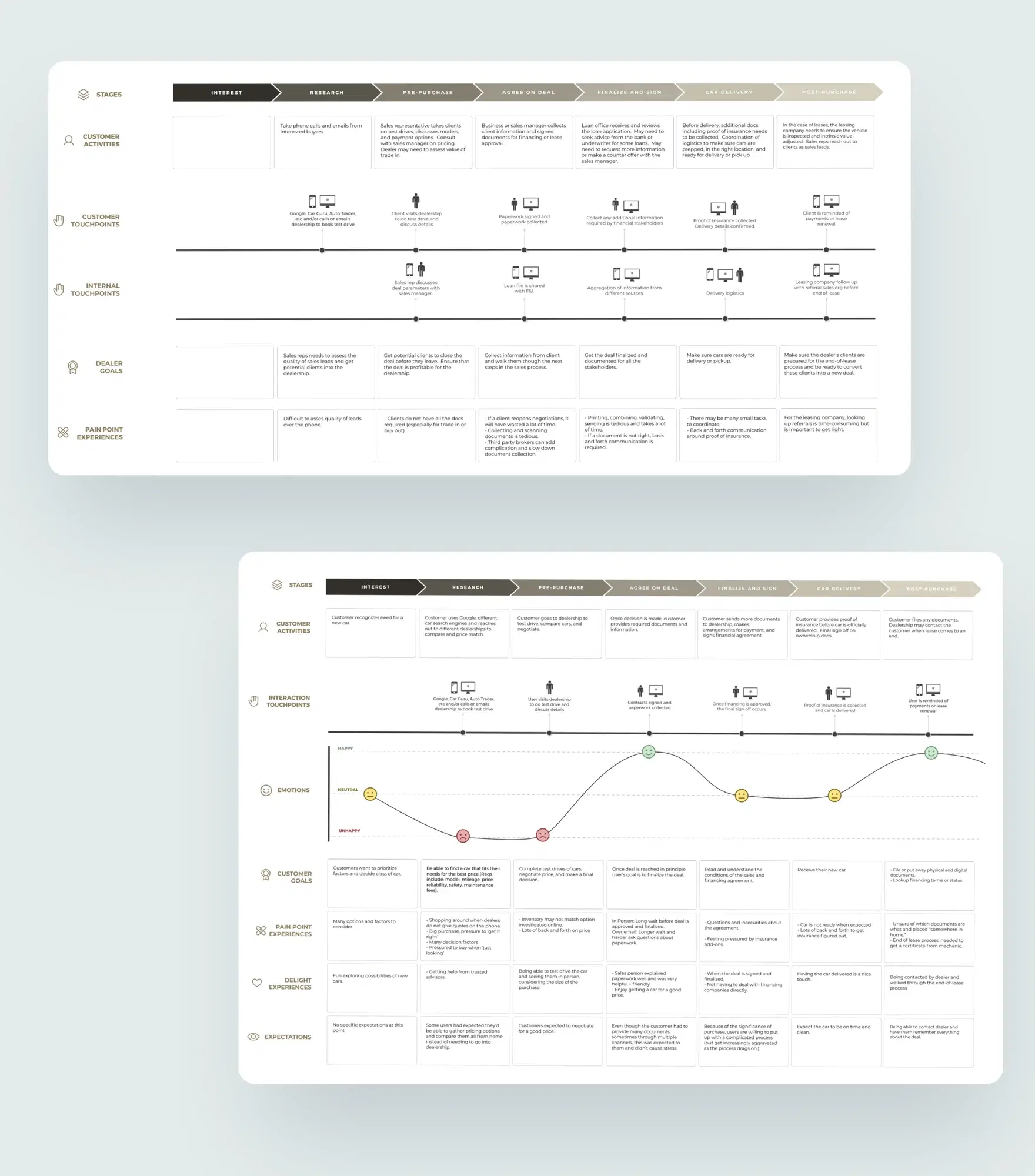 We developed a web application organized by customer and document that facilitates seamless document sharing between buyers and sellers during dealership engagements. The old web application's designs were clunky and had feature-constraints due to technical limitations. After conducting user research, we were able to create an MVP web application organized by customer and document, facilitating seamless document sharing between buyers and sellers during dealership engagements to address these pain points.